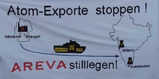 „Thanks a lot for the nice report on your events. We appreciate your solidarity and support. Please keep talking about our struggle and spread the word around not only in Germany but also the rest of Europe. As I acknowledged the other day, we have received your flag and hoisted it on our stage. Even today several people asked us about the flag.“ (6.3.13, Mail von S.P. Udayakumar , Sprecher der PMANE)