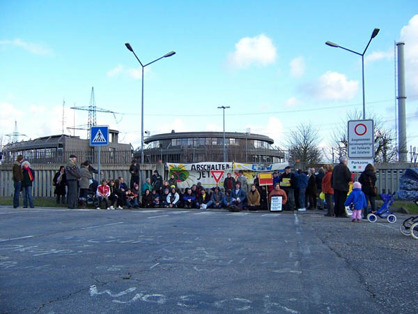 „Blockade des Parkplatzes bzw. der Zufahrt zum Kernkraftwerk Neckarwestheim.“