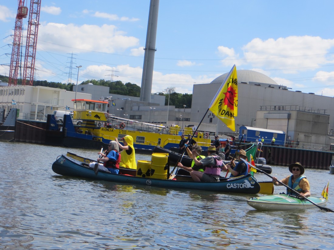 Am Sonntag, 21.05.17 beteiligten sich am Wasseraktionstag "Neckar? Entern!" ca. 70 Menschen auf 35 Booten an der Demo auf dem Neckar. Eine bunte Protestflotte startete in Kirchheim in Booten genau der Castor-Transportroute entgegen. Bei einem Zwischenhalt am AKW wurde erneut gefordert, die unnötigen und riskanten Transporte abzusagen. Große Protest-Enten schwammen mit den Booten. Insgesamt waren wir 150 Menschen, die auf dem Wasser, mit dem Fahrrad und zu Fuss an der Protestaktion beteiligt waren. Danke für Eure Teilnahme und die gute Aktion! Hier gibt es Bilder zur Aktion sowie links zu Medienberichten. Besonders empfehlen wir auch den Bericht bei beobachternews.de.