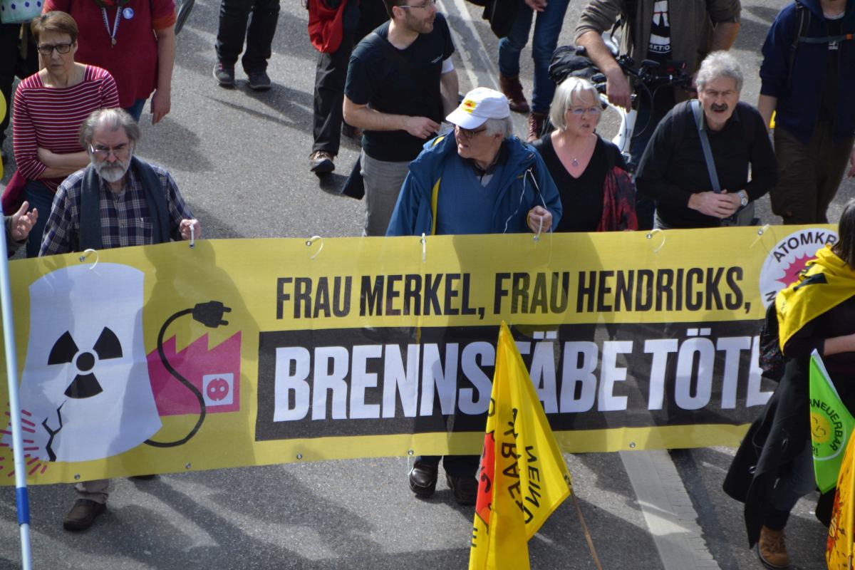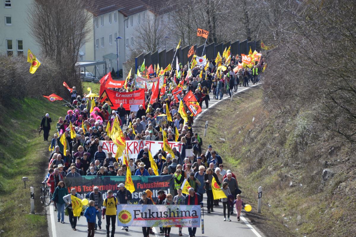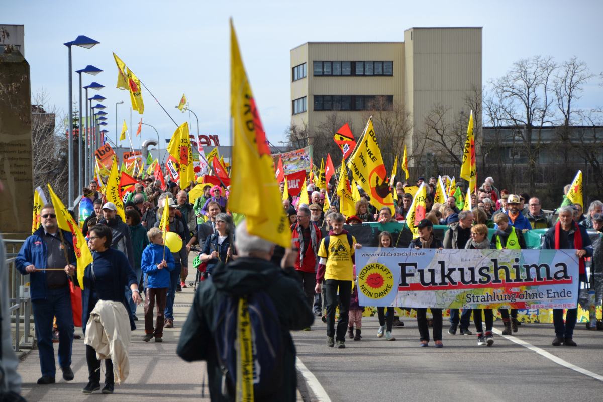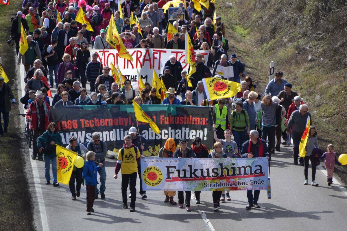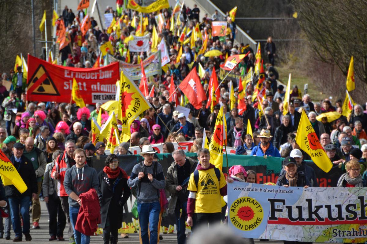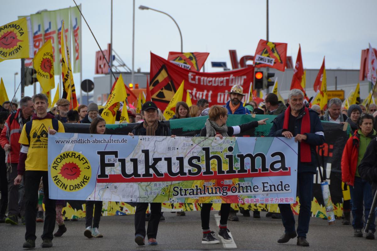 Etwa 800 Atomkraftgegner*innen demonstrierten am Sonntag, 11.03.18 anlässlich des 7. Jahrestags des Super-GAU von Fukushima für die sofortige Stilllegung aller Atomanlagen und für eine beschleunigte Energiewende, die die Klimaziele einhält (Demo-Aufruf: "Fukushima - Strahlung ohne Ende").