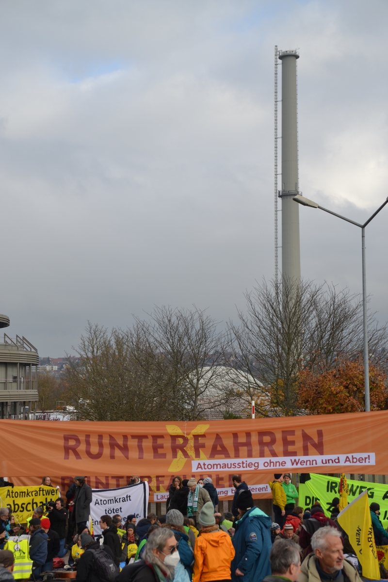 Der Bundestag hatte am 11. November längeren AKW-Laufzeiten zugestimmt, gerade gestern hat der Bundesrat diesen Beschluss gebilligt. Die drei Atomkraftwerke Neckarwestheim, Isar II und Emsland sollen noch bis zum 15.4.2023 weiter betrieben werden. Diese Entscheidung kritisieren die Aktivist*innen: „Der Stresstest hat gezeigt, dass Atomkraftwerke auch in diesem Winter überflüssig sind. Sie sind keine Lösung für die Energiekrise, stattdessen verschärfen sie das Problem, indem sie Netze verstopfen und uns alle jeden Tag der Gefahr eines Atomunfalls aussetzen“, sagt Clara Tempel, Pressesprecherin der Kampagne „Runterfahren“. Um auf das Risiko eines Super-GAUs aufmerksam zu machen, nehmen an der Sitzblockade Menschen unterschiedlichen Alters aus ganz Deutschland teil. Damit wollen sie auch die Initiativen vor Ort unterstützen. Franz Wagner vom Bund der Bürgerinitiativen Mittlerer Neckar erkärt: „Ich freue mich über das starke Signal dieser Warn-Blockade gegen den gewissenlosen Betrieb der Atomkraftwerke". Das Atomkraftwerk Neckarwestheim war zuletzt stark in die Kritik geraten, weil dort unzählige Risse in den Dampferzeugern festgestellt wurden. Auch Herbert Würth vom Aktionsbündnis Castor-Widerstand Neckarwestheim unterstützt die Forderung der Blockierer*innen: "Wir lehnen die Laufzeitverlängerungen ab, jetzt muss rasch die weitere Energiewende ohne Atom und Fossile verwirklicht werden".