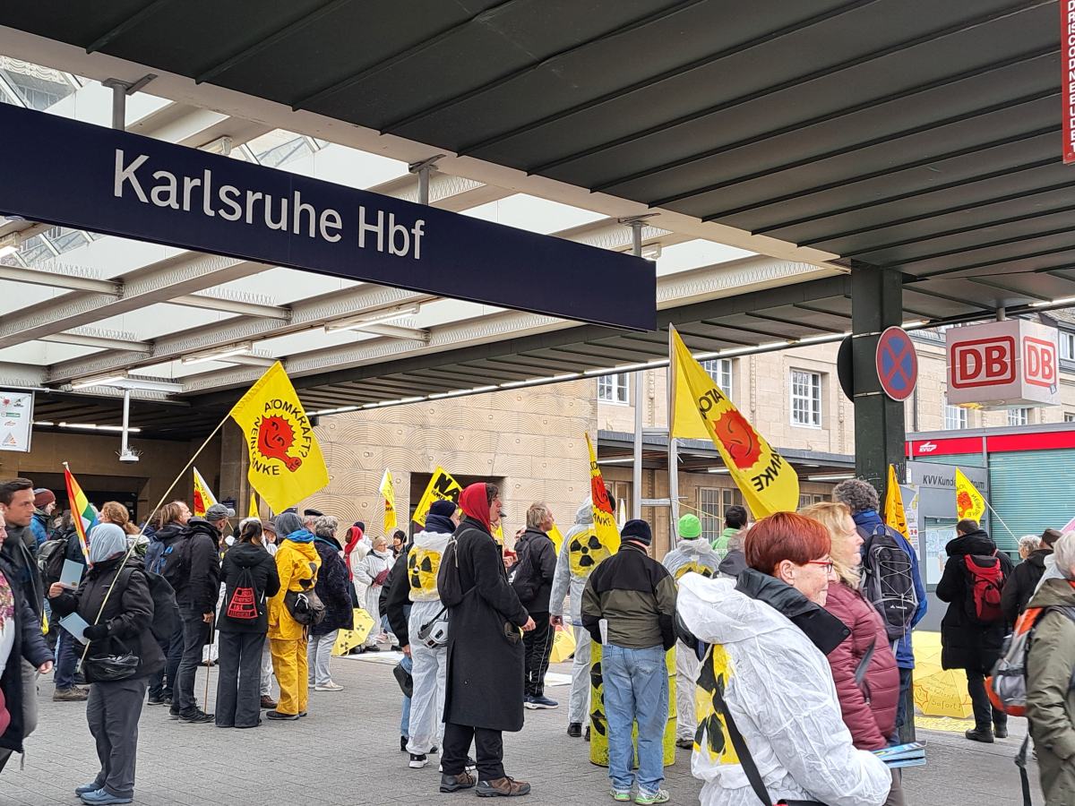 Im Vorfeld des angekündigten Castor-Transports mit hochradioaktivem Atommüll aus der französischen WAA La Hague nach Philippsburg fanden am 9.11.24 Protestkundgebungen am HBF Karlsruhe und in Philippsburg in der Ortsmitte statt. An beiden Orten fanden Kundgebungen statt - dazwischen die gemeinsame "Protest-Zugfahrt" und eine Demo durch Philippsburg. Redebeiträge bei den Kundgebungen hielten Anete Wellhöfer, Harry Block und Herbert Würth. Etwa 60-70 Atomkraftgegner*innen beteiligten sich an dieser Aktion. Fotos und Manusskripte der Reden findet Ihr auf der Internetseite der Südwestdeutschen Anti-Atom-Initiativen unter www.antiatom.net.