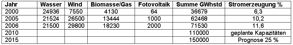 Quelle für alle Zahlenangaben: Bundesumweltministerium, Bundesverband Erneuerbare Energien (www.bee-ev.de). Allein der Anstieg von 2005 auf 2006 übersteigt die Jahresstromproduktion des GKN 1 um das 1.5-fache]