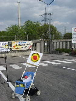 Ca. 50 Menschen versammelten sich am Samstag vor dem Tor des AKW in Neckarwestheim um an die Opfer der Atomkraft zu erinnern. Anlaß war der 22te Jahrestag der Reaktor Katastrophe von Tschernobyl, am 26.04.1986.