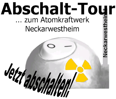 Die Abschalt-Tour ist ein öffentlicher Spaziergang mit Stationen, an denen über die Gefahren von Uranabbau, Betrieb von Atomkraftwerken und die Atommüllproblematik informiert wird. Am Kraftwerk angekommen, werden die Teilnehmer symbolisch das AKW Neckarwestheim abschalten.