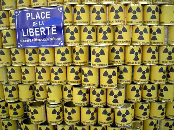 Image"Am 3. Oktober 2009 wurde die Demokratie anlässlich der Zusammenkunft für die Schließung des Atomkraftwerks Fessenheim mit Füßen getreten.*