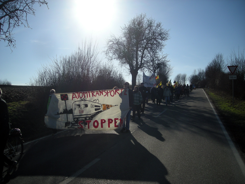 b_215_215_16777215_0_0_images_stories_akt11_0206sosp_xDSCN6690.jpgMit einem Sonntagsspaziergang demonstrierten etwa 90 AKW-Gegner_innen gegen gegen den Weiterbetrieb der AKWs. In Redebeiträgen wurde auf erneut das ungelöste Atommüllproblem dargestellt, sowohl bei der Lagerung als auch bei seiner sogenannten "Verwertung" in WAAs. Um mit diesem Problem überhaupt voran zu kommen, muß zuallererst die Atommüll-Produktion sofort gestoppt werden!