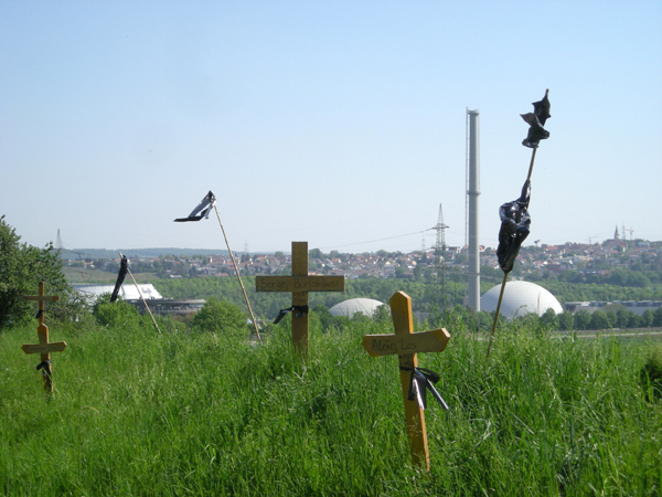 Seit 1989 gedenken AKW-GegnerInnen jährlich am Tschernobyl - Jahrestag vor dem AKW Neckarwestheim den Opfern der Atomindustrie in Form einer Mahnaktion.