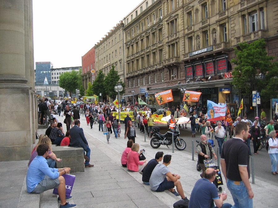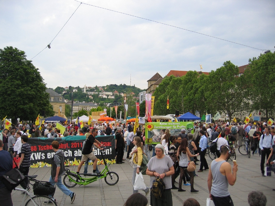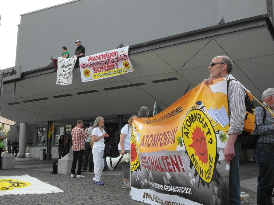 Im Artikel einige Bilder zu den Auftakt-Aktionen am Mittag ("Begrüßung der Atomlobbyisten") sowie einige optische Eindrücke von der Demonstration durch die Stuttgarter Innenstadt.