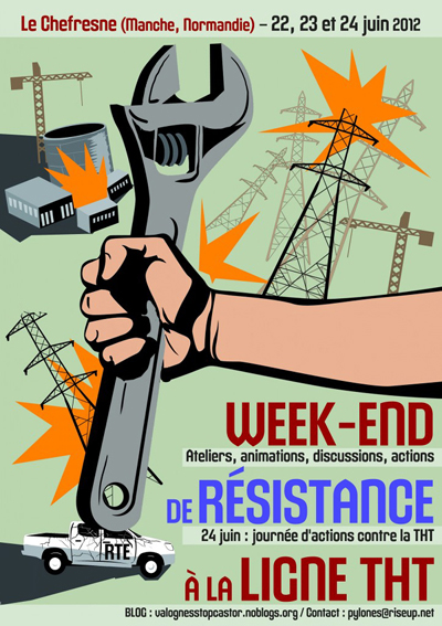 Le Chefresne (Normandie) ist derzeit in Frankreich Hochburg des Widerstands gegen die AKW- und Stromtrassenbauten. Seit Ende März sind dort Bäume, die einer neuen Stromtrasse in den Weg stehen, besetzt. Überall an dem geplanten Trassenverlauf finden Aktionen statt: ob Bäume pflanzen, Spaziergänge auf Baustellen oder auch Sabotageaktionen.
