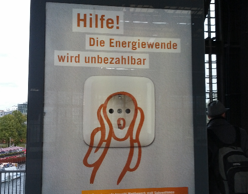 „Hilfe! Die Energiewende wird unbezahlbar" lässt sie in einer großen Kampagne mittels Zeitungsanzeigen und Plakaten verbreiten. Als Motiv wird bspw. die Figur aus Edvard Munchs berühmtem Bild „Der Schrei" über eine Steckdose skizziert.