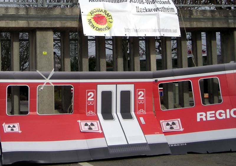 b_215_215_16777215_0_0_images_stories_akt11_0306sospa_s_DSCN6853.jpgUmweltfreundlich geht anders: Mit dem Bau eines neuen Umrichtwerks am AKW Neckarwestheim für knapp 50 Mio. Euro zementiert die Deutsche Bahn ihre Abhängigkeit vom Atomstrom. So stellt die Bahn die Weichen für die Zukunft, um auch in der Zeit nach der Stilllegung von GKN 1 die Züge mit der Hochrisiko-Energie Atomstrom rollen zu lassen.