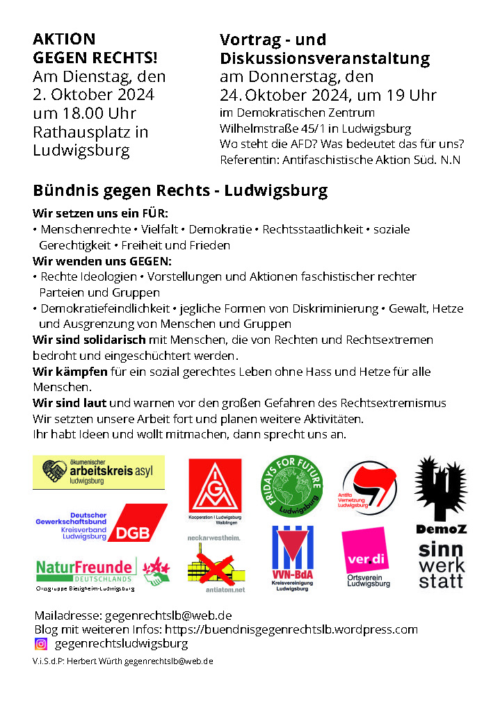 b_215_215_16777215_0_0_images_stories_akt24_bgr_2_10.jpgAm 2. September hatte das Bündnis gegen Rechts Ludwigsburg aufgrund der beiden Wahlen in Thüringen und Sachsen eine spontane Protest-Kundgebung auf dem Rathaushof.