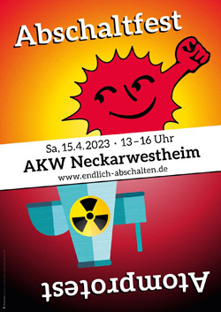 Setzen wir jetzt deutliches Abschalt-Zeichen! Das Bauernopfer GKN 1 reicht nicht aus. Wir wollen keinen weiteren Atommüll mehr, kein weiteres "Restrisiko". Sondern den Atomausstieg jetzt, auch das Abschalten von GKN 2.